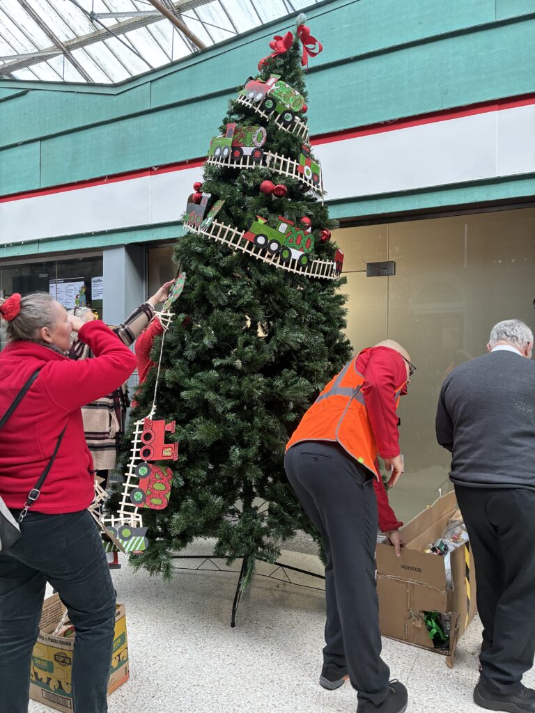 Local artist Sue Guildford led the workshop and helped everyone design decorations that celebrate the role of rail in our communities. With support from Transport for Wales, a 14 foot Christmas tree was set up at Chester Station on 3 December, and the group worked hard to decorate it.